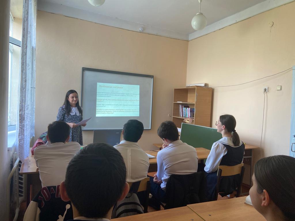 29.03.2023 г. Педагог-псхолог Шиукаева А.А. провела беседу с обучающимися 9 и 10 классов "Выбор моей будущей професии"